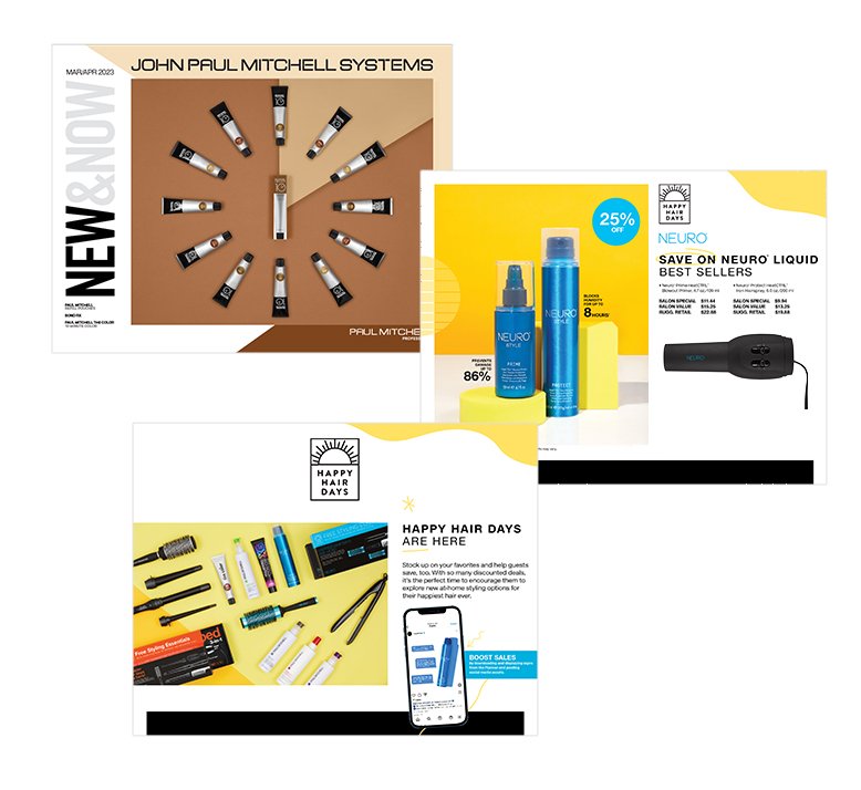 The New and Now Brochure is a bi-monthly brochure sales piece, showing all promotions for that time period, including any new product launches. I art directed the product shots as well as designed these brochures.